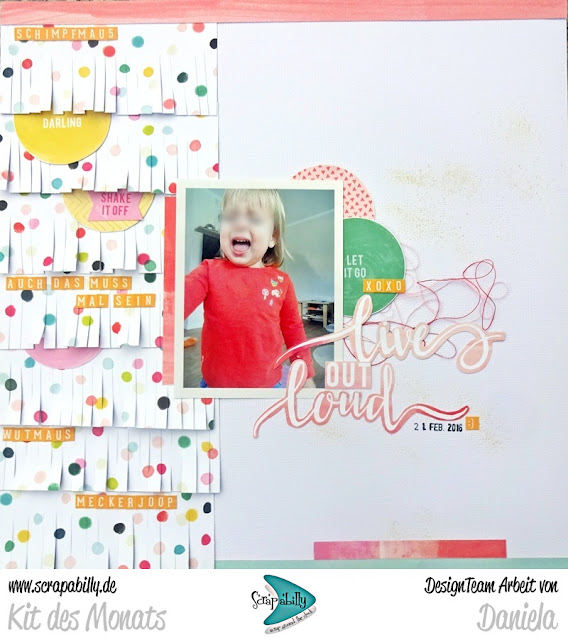 Bei den HappyScrappyFriends geht es diesen Monat um Stanzteile und da ich meine BigShot irgendwie gar nicht so oft benutze, habe ich mich der Herausforderung direkt gestellt und ein Layout mit großen Stanzteilen gewerkelt, die ich hinter dem Foto platziert habe.
